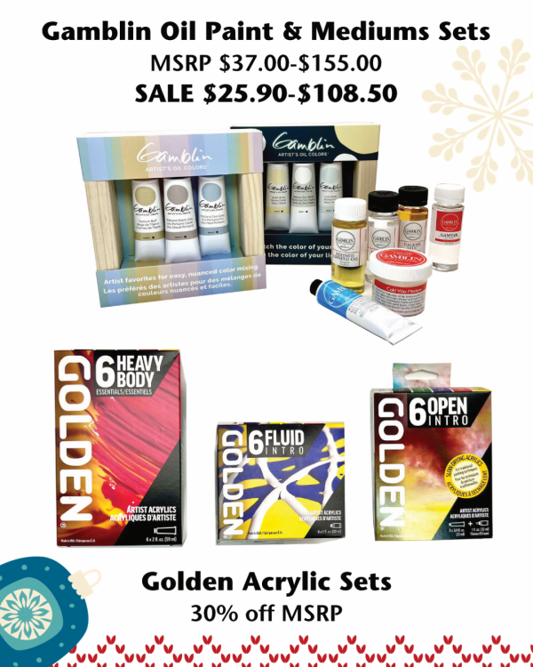 What are you waiting for? Come on in early and let our team of fellow artists help you gather everything you need to give your loved one’s holiday a perfect finish!