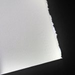 This versatile paper is mouldmade in France 25% cotton, 75% Alpha Cellulose and has a neutral pH and gelatin sized. What makes this paper so special is it's duality. One side is Cold Pressed for watercolor and the reverse side is Hot Pressed for pen and ink. An excellent choice for silkscreen, typography, and foil stamping. Rolls have a deckle edge on both sides.